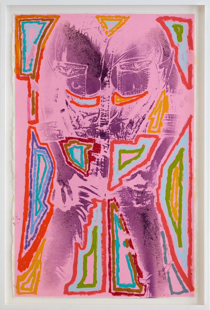 Keltie Ferris translates the concept of identity on an abstract level. His paintings are characterized by references to Performance Art, Abstract Painting and digital imagery, combining the illusion of space with direct bodily experience. He occasionally uses his own body as a tool, while his painting as such evokes a corporeal space due to the change between spray-painted, hand-painted and relief-like elements. Ferris grasps painting as a personal index that rejects easy gendered identification of the body, suggesting a performative state of identity.